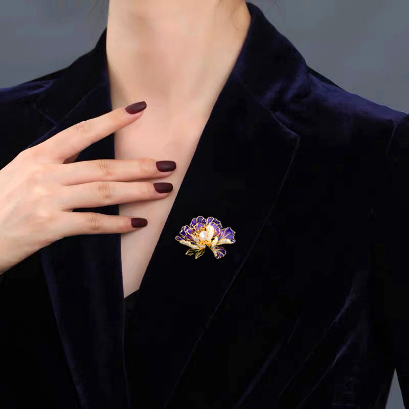 | Chinese-style freshwater pearl glittering peony flower brooch, micro-set zirconia pin, outer jacket, gift, brooch |