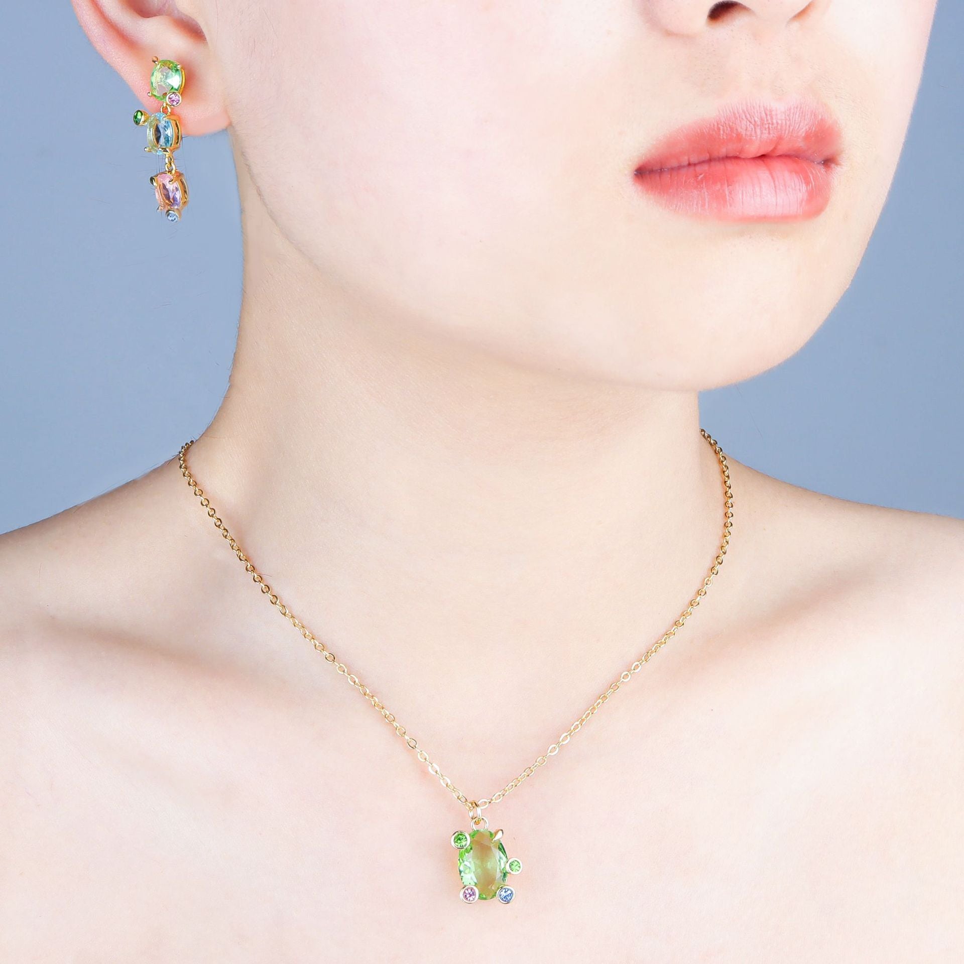 | Fashionable and elegant green diamond fashion multi-purpose matching set with irregular design, featuring a sophisticated micro-set decoration, necklace set. |