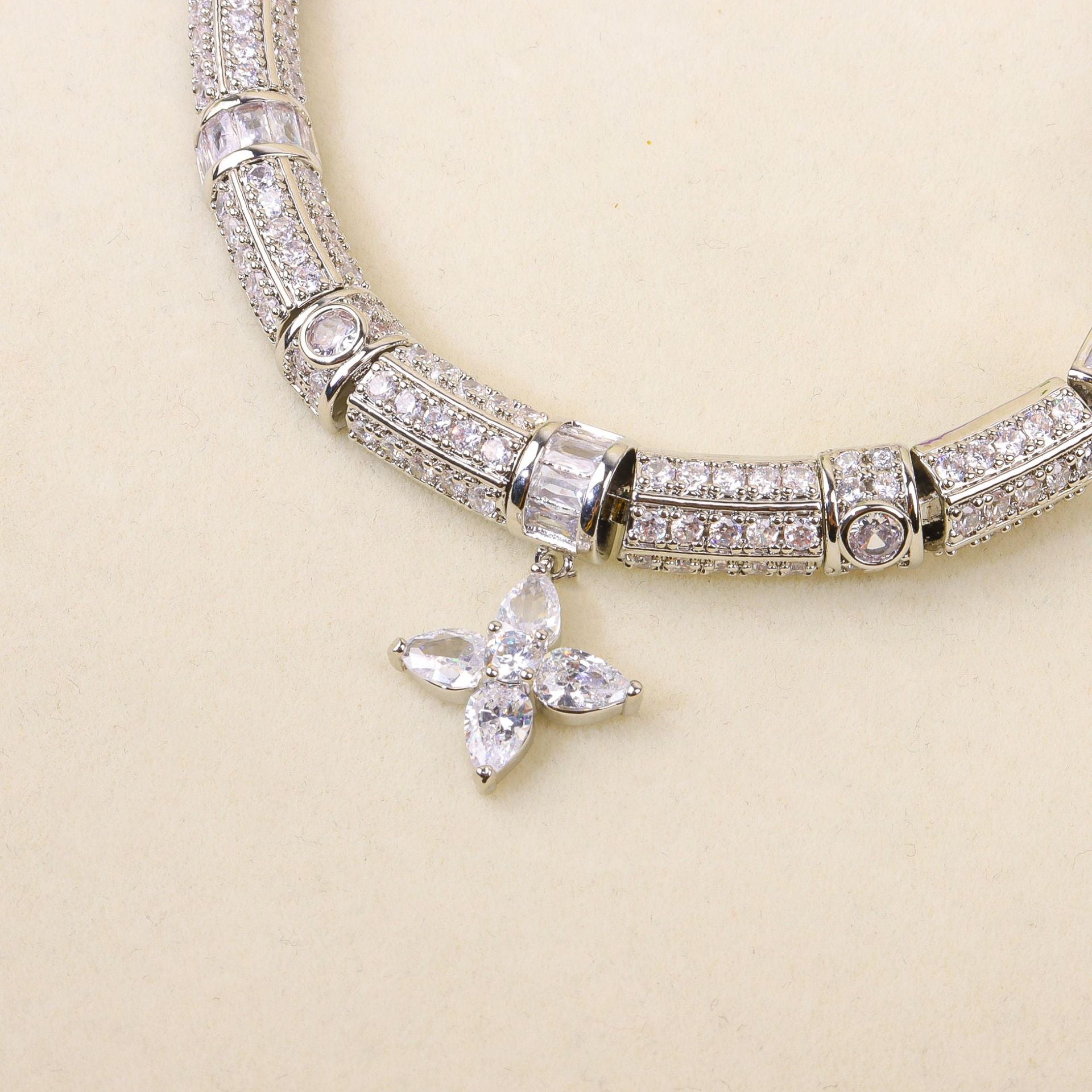 | This necklace is designed with exaggerated heavy work, slightly set with zircon white leaves, exuding a sense of high-end fashion and versatility |