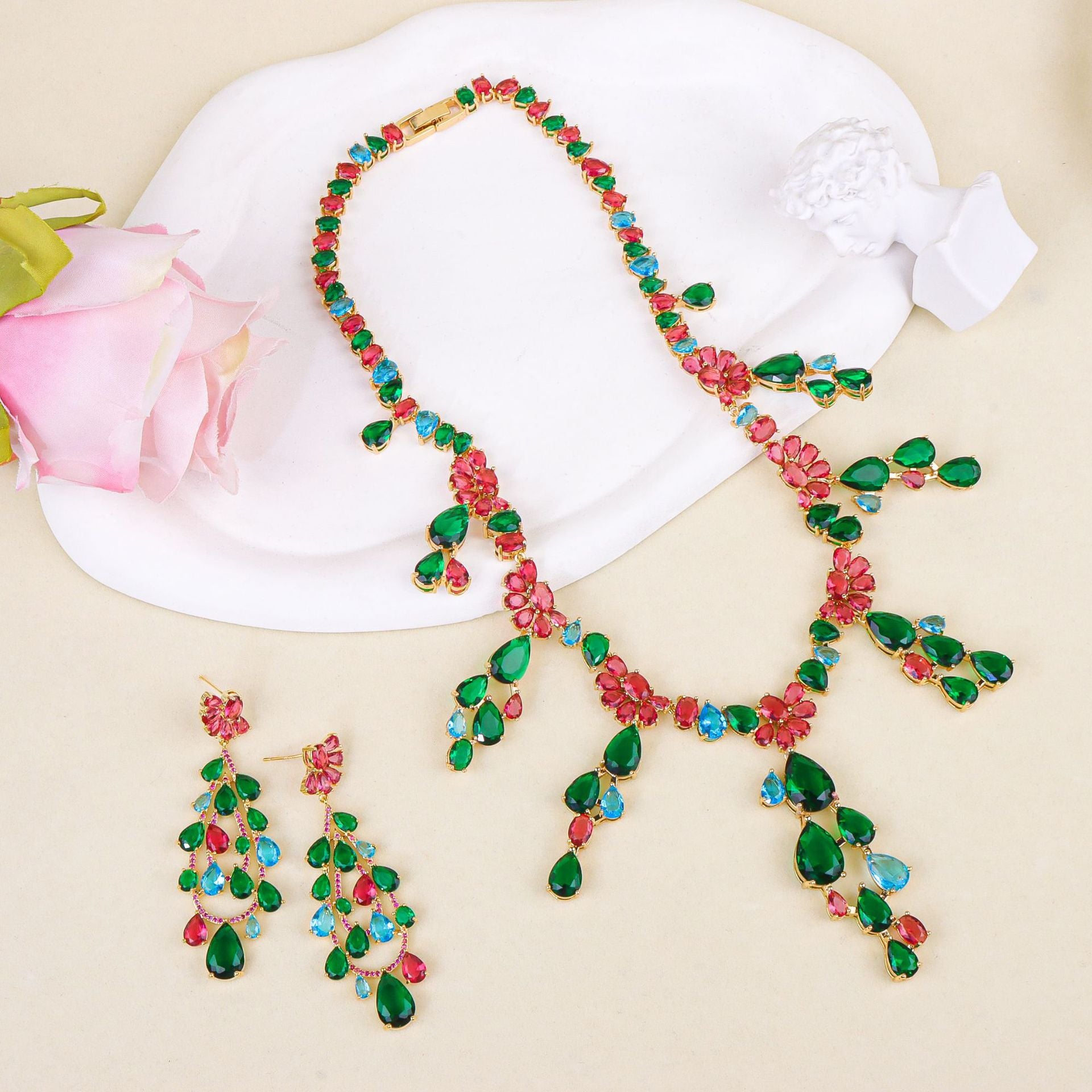 | Best-selling new luxury waterdrop design set featuring ultra-bright zirconia high-end accessory set |