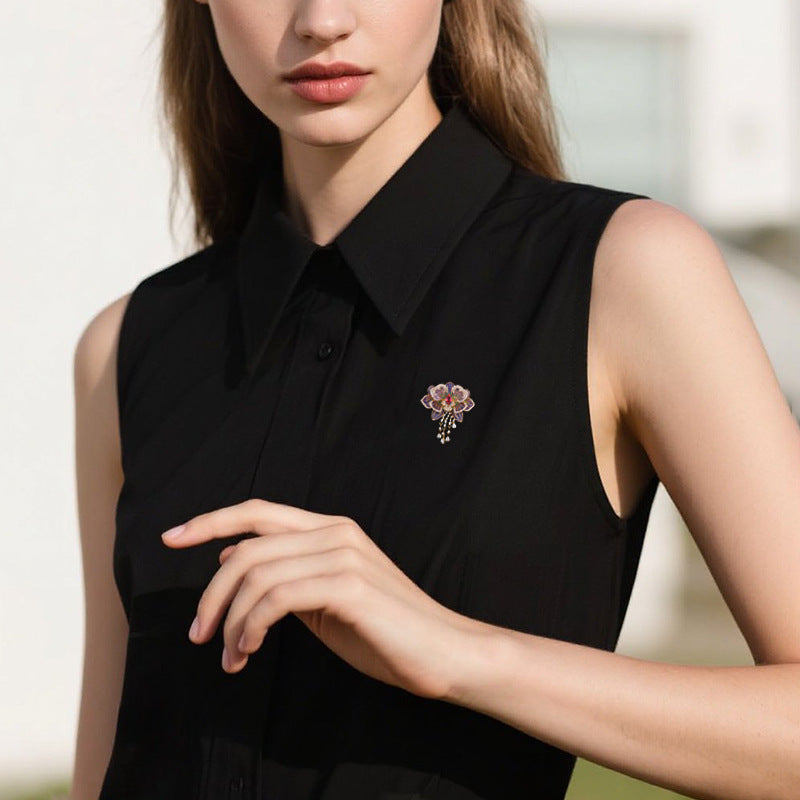 Fashionable and exquisite enamel-colored peony brooch, high-end and luxurious micro-set zirconia chest accessory, design-inspired fringed brooch accessory