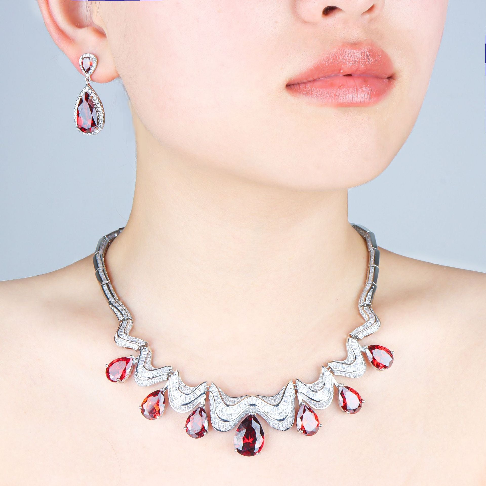 | European and American fashion waterdrop-shaped high-end zirconia luxury minimalist chain necklace, earrings and stud set |